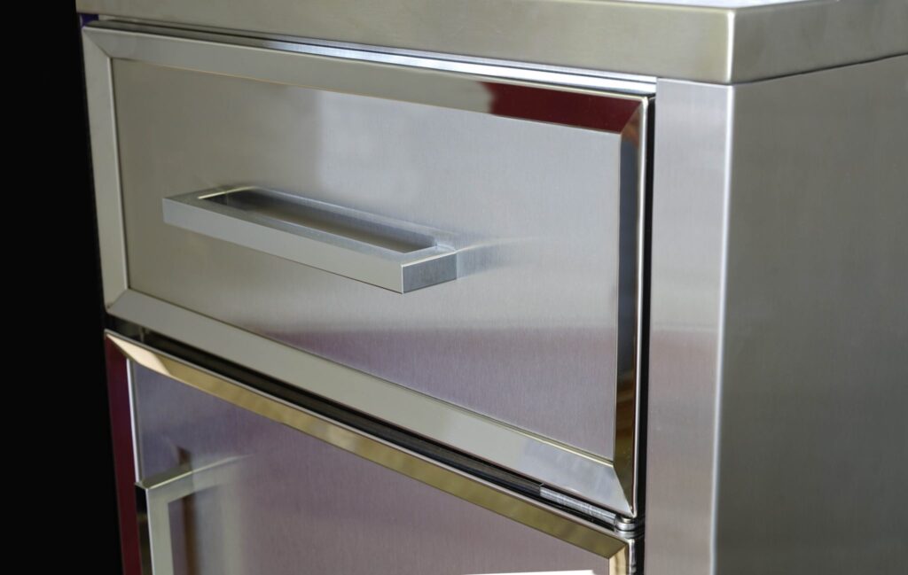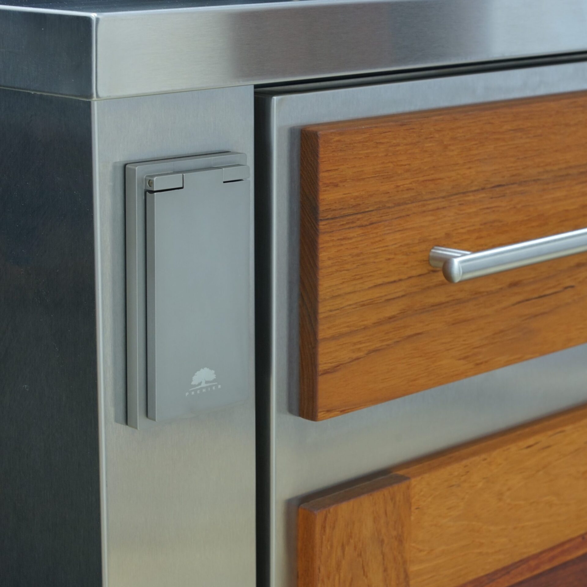 Premier Outdoor cabinets feature a gasket seal, which is mounted to the stainless steel cabinet face, creates a waterproof, weathertight seal when the doors and drawers are closed.