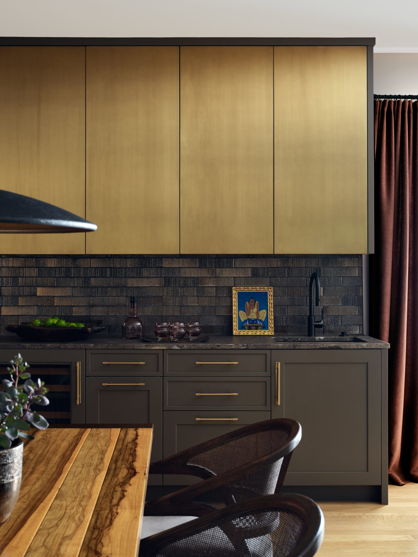 Brass, Faux Metal Finish, Metal, Metal Accents, Open Shelving, Paint